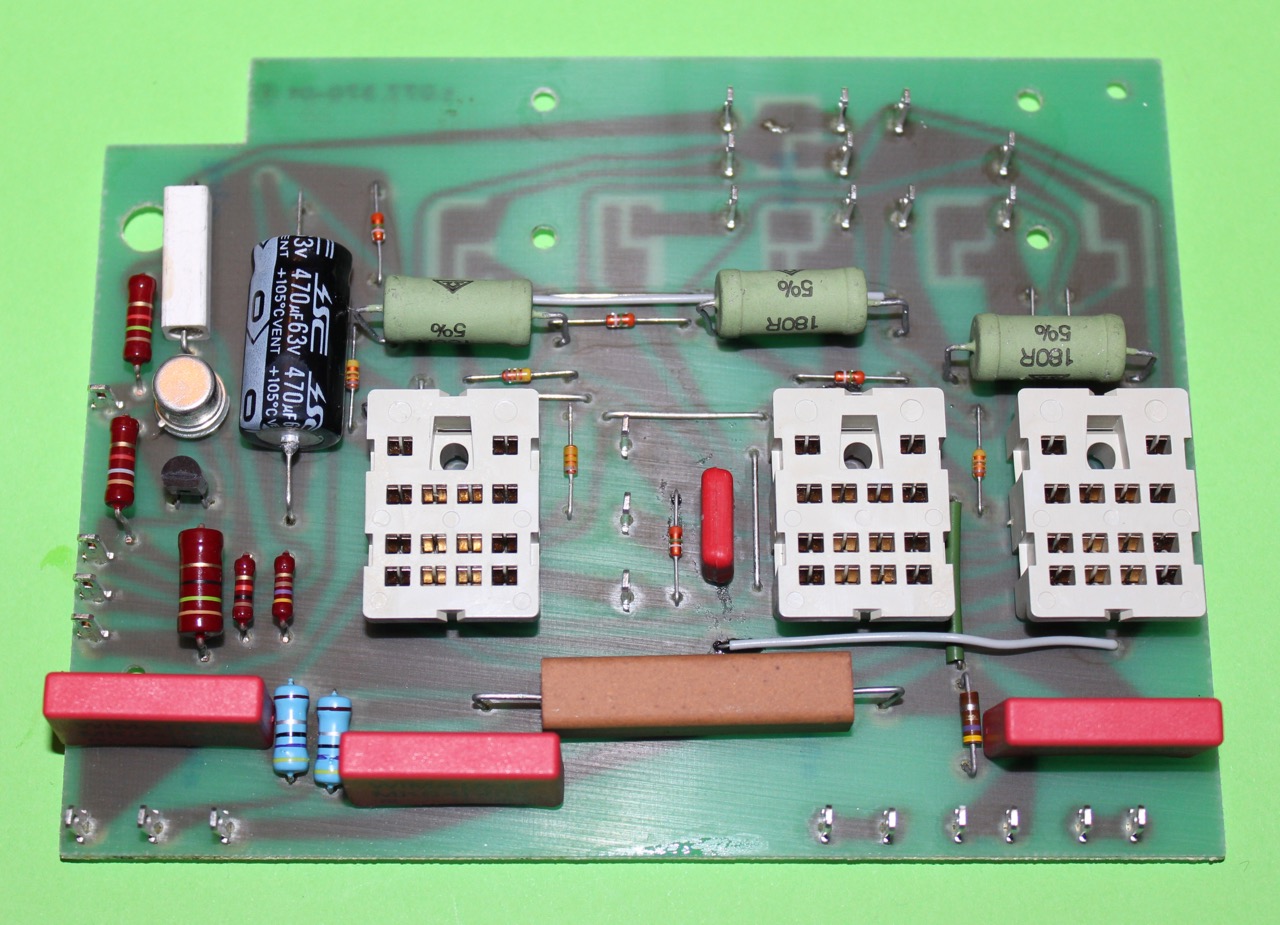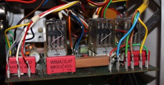 Hier hatte ich gehofft, nichts tun zu müssen, die RIFAs waren schon vom Vor-gänger gewechselt worden. Aber weit gefehlt, die Motorkondensatoren waren ausgelaufen und die schwarze Suppe hat die halbe Platine verklebt. Hier half nur eine Radikalkur, einmal Spülmaschiene bitte (aber ohne die Relais!). Nach ausreichender Trocknung konnten nun die restlichen Kondensatoren gewechselt werden. So ganz habe ich die schwarze Suppe doch nicht abbekommen, man sieht noch ein paar kleine Reste an der Diode in der Mitte der Platine.