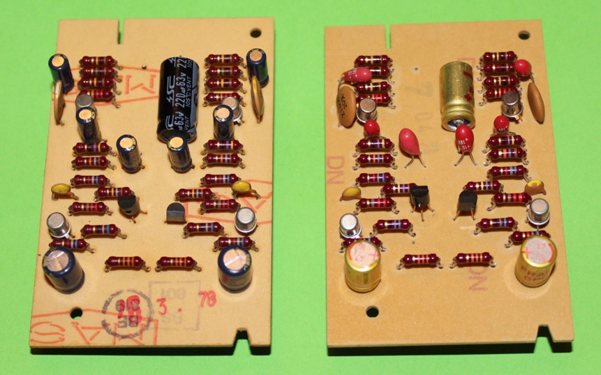 Links sieht man übrigens die revidierte und rechts die Originalfassung der Platine.