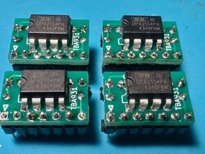 Neben der Version mit der IC-Fassung habe ich noch ein paar mit dem OPA2134 von Burr Brown ausgestattet. Bei den SMD ICs hatte ich welche, die nicht den Erwartungen entsprachen, oder ich hab da was falsch gemacht.