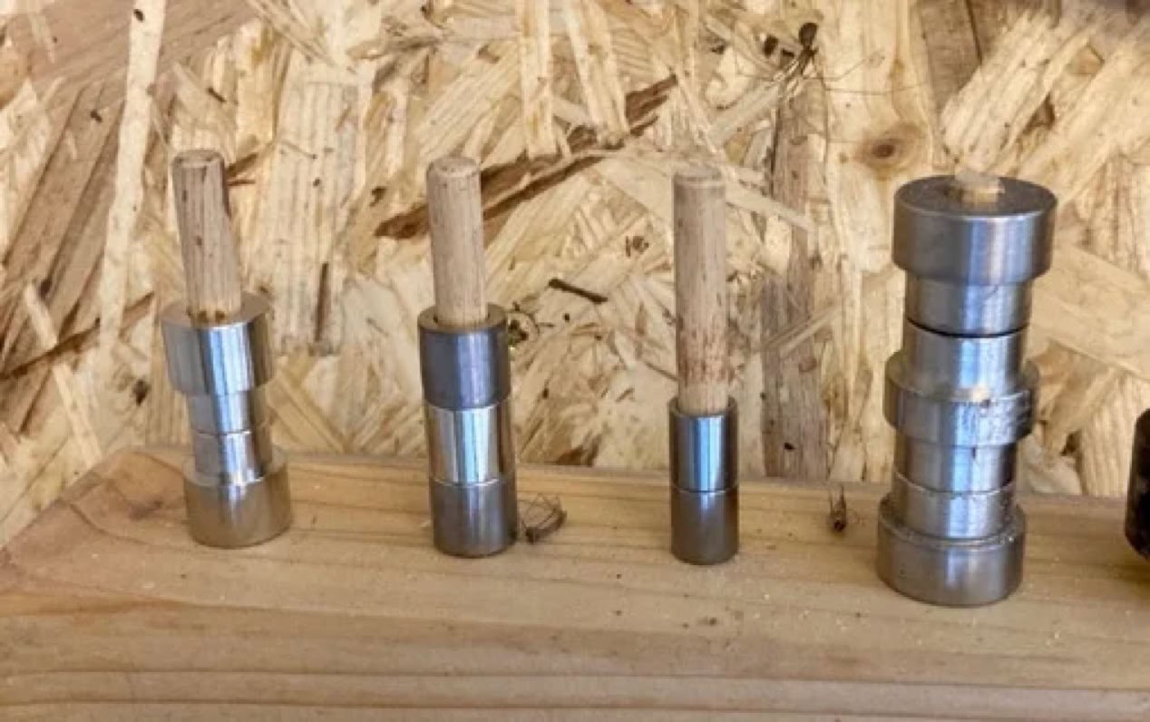 Mit ein paar gedrechselten Abfallstücken lässt sich aber auch die Drechselbank als Stiftpresse nutzen.