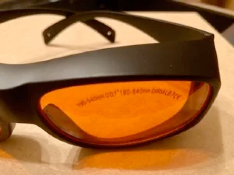 Eine vernünftige Schutzbrille ist eigentlich kein Zubehör, sondern das a und o beim Lasern. Die mitgelieferten Schutzbrillen (links) verdienen ihren Namen eigentlich nicht, da sie kaum schützen, es muss schon eine zertifizierte Schutzbrille sein!