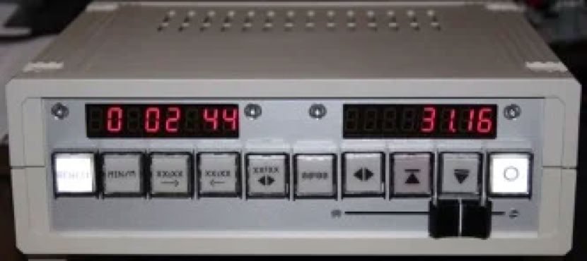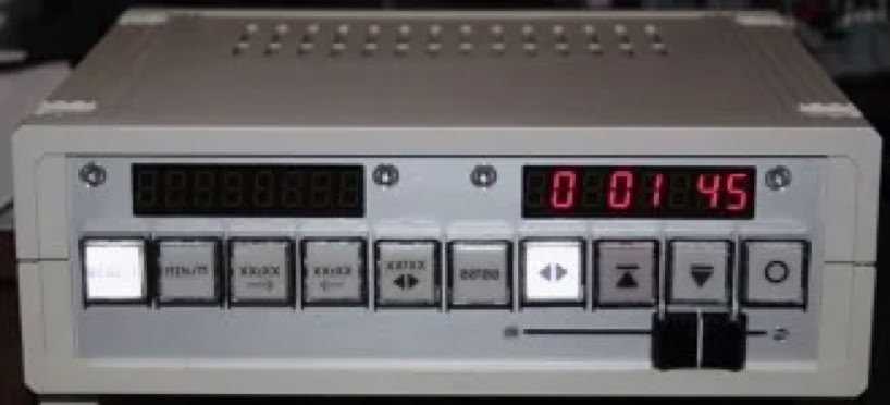 Links soll dann der gespeicherte Zählerstand, die Bereitschaftsanzeige, Umschaltung für min/sec und m/cm, lesen des gespeicherten Zählerstands, speichern des aktuellen Zählerstands und Spulen zur gespeicherten Position dargestellt werden.