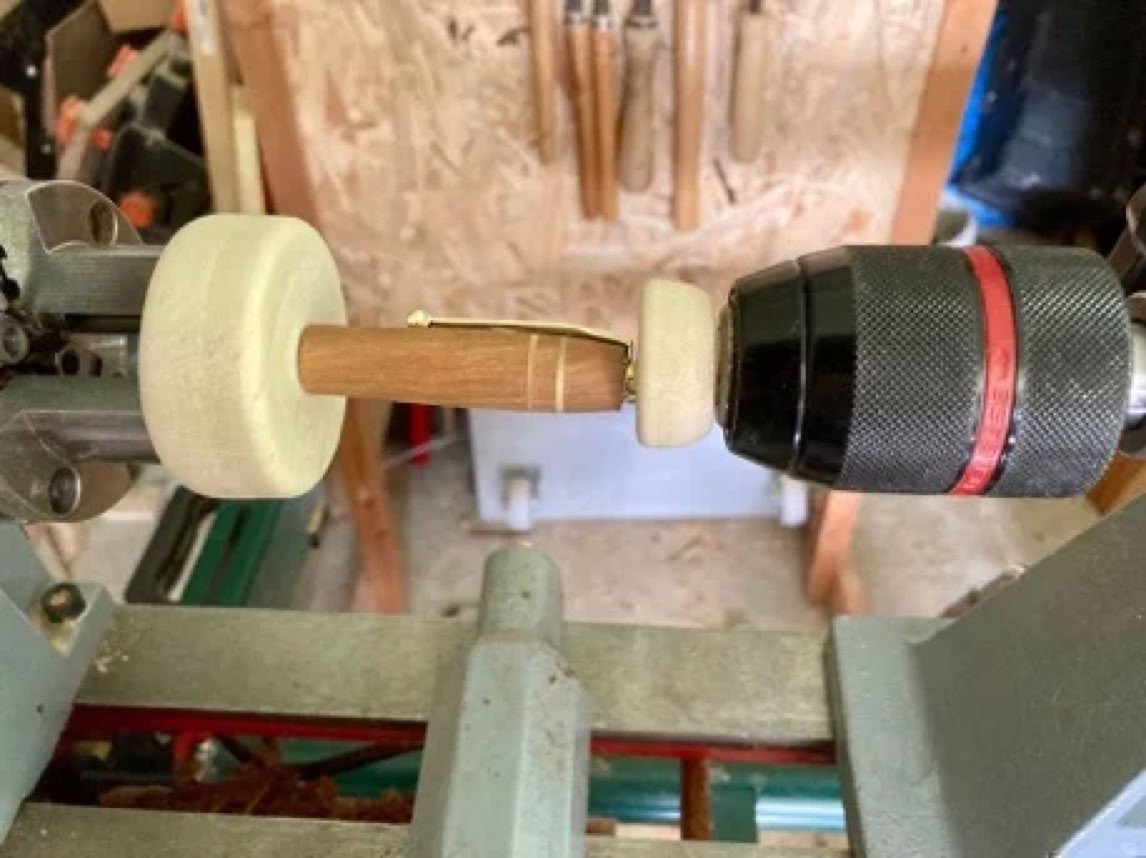 Mit ein paar gedrechselten Abfallstücken lässt sich aber auch die Drechselbank als Stiftpresse nutzen.