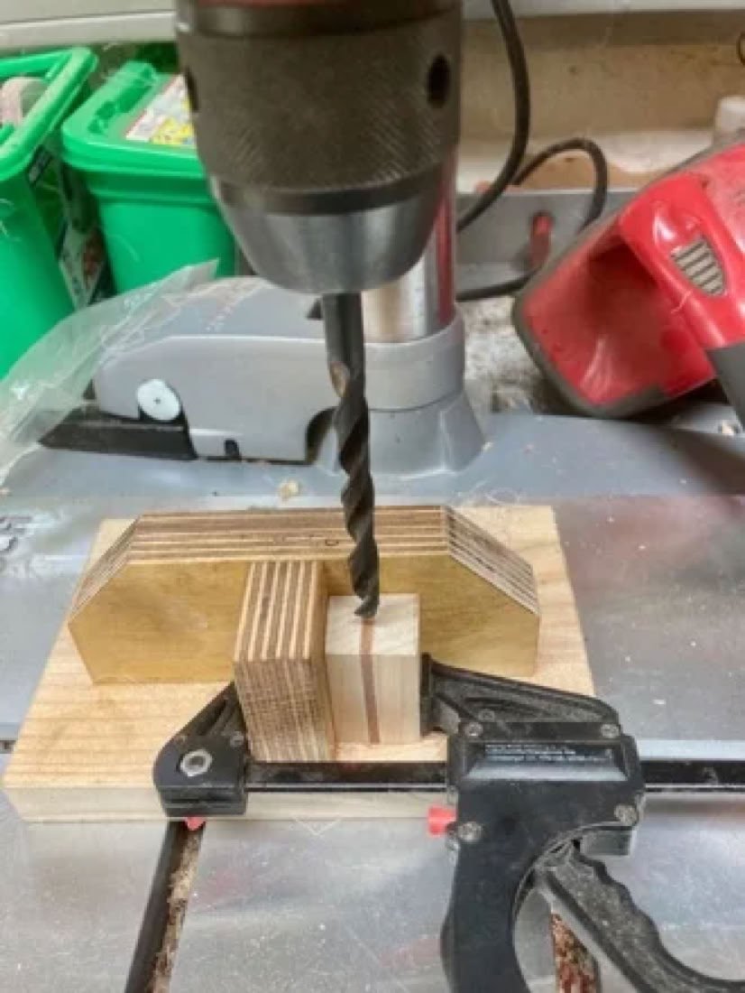Hier ein kleines Hilfsmittel, zum Bohren der Löcher für die Hülsen.
