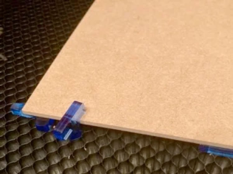 Wenn man Teile nicht nur gravieren, sondern auch schneiden will, ist ein Wabengitter unverzichtbar. Es sollte darauf geachtet werden, dass die Waben aus Eisenmetall sind, somit kann man Teile mithilfe von Neodym-Magneten fest positionieren, auch können sie als Abstandshalter verwendet werden, um Branntspuren auf der Rückseite zu verhindern. Waben aus Aluminium sind preiswerter, haben aber den Nachteil, das sich Teile nur mit Clips aus Acryl oder Holz einspannen lassen. Das hält nicht besonders und ein wiederholgenaues Arbeiten ist auch nicht möglich.